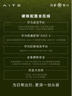 值得关注的是,全新问界M7增程长续航版悉数保留了在售车型的核心配置,硬核配置全面在线。华为途灵平台搭载全铝合金双叉臂独立前悬、五连杆独立后悬、双腔闭式空气悬架、连续可变阻尼减振器,兼顾舒适性与驾控质感;华为乾崑智驾ADS 4辅助驾驶系统配合34个感知硬件,可实现对动静态目标(含异形物体)的全场景和全天候感知,提升雨雾尘恶劣天气的安全性,以及对后向悬浮物、负向场景的识别,实现360度全覆盖;三电系统基于华为巨鲸电池平台打造,搭载华为DriveONE高压七合一电驱系统;全维防碰撞4.0显著提升行车安全,全天候守护用户驾乘全程。